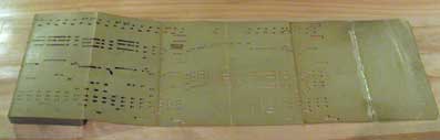 巻き取り式の薄い紙に穴を開けます。大きさが小さく取り扱いが楽なので、最も多く使われました。左の写真は映画館用のフォトプレーヤーのミュージックロールですが、途中で音楽が途切れないように二本のロールを使いました。